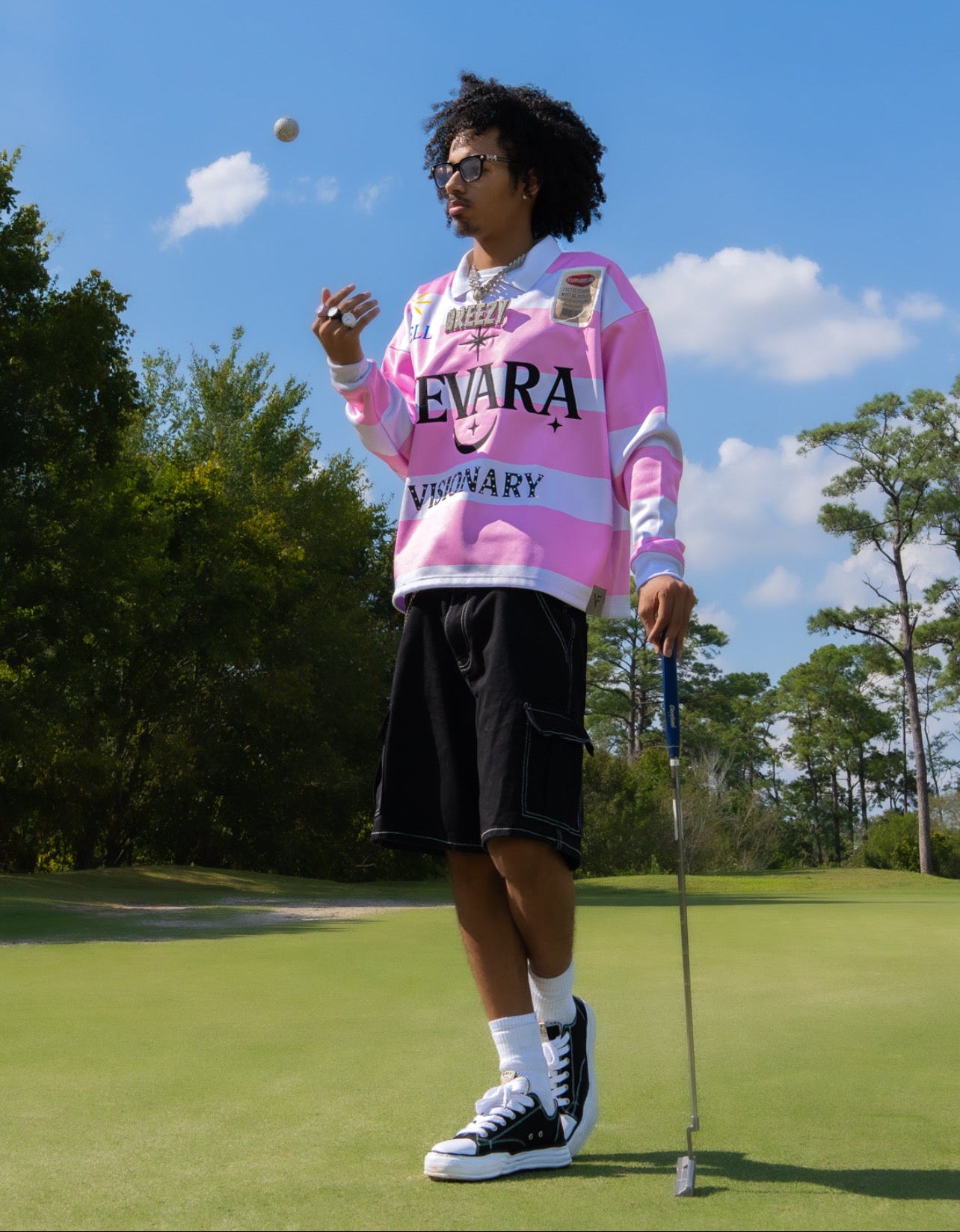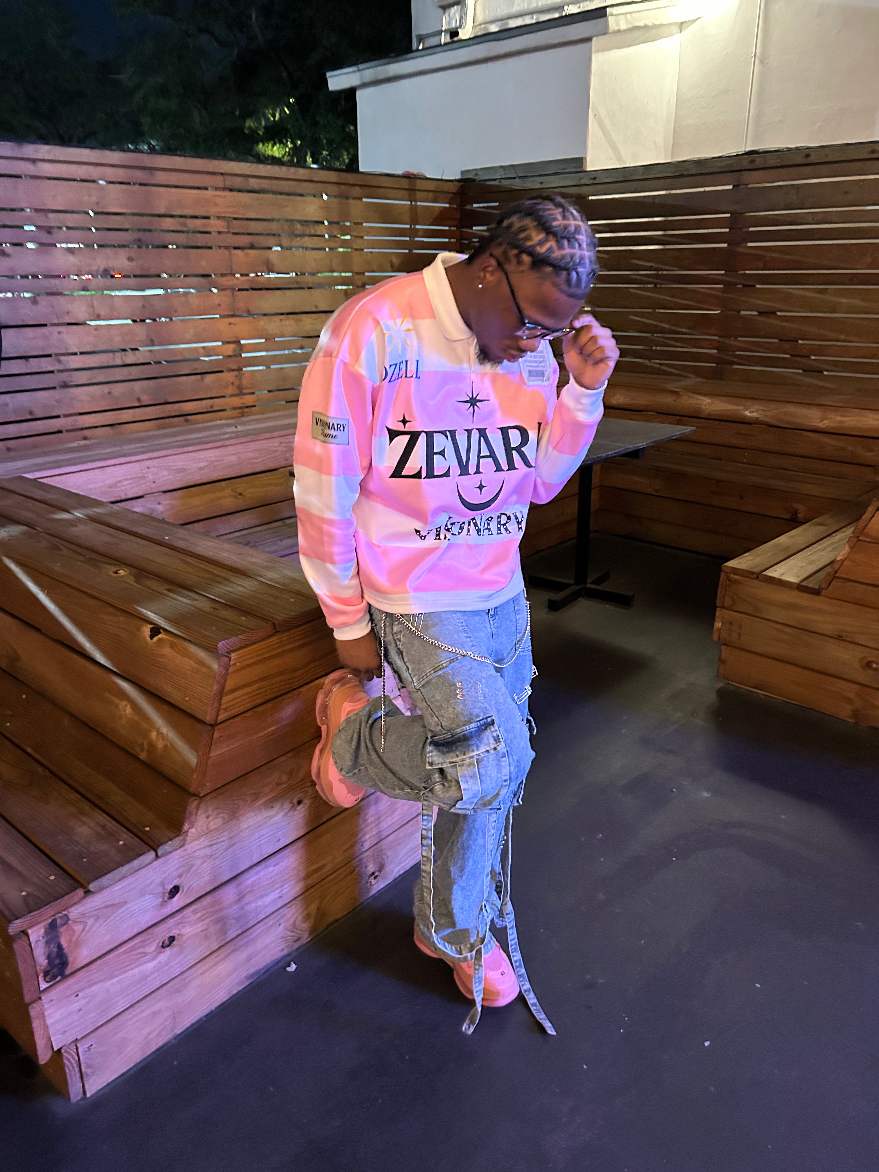 Visionary Flame Varsity Pink Stripe Long Sleeve T-ShirtZEVARA COLLECTION
