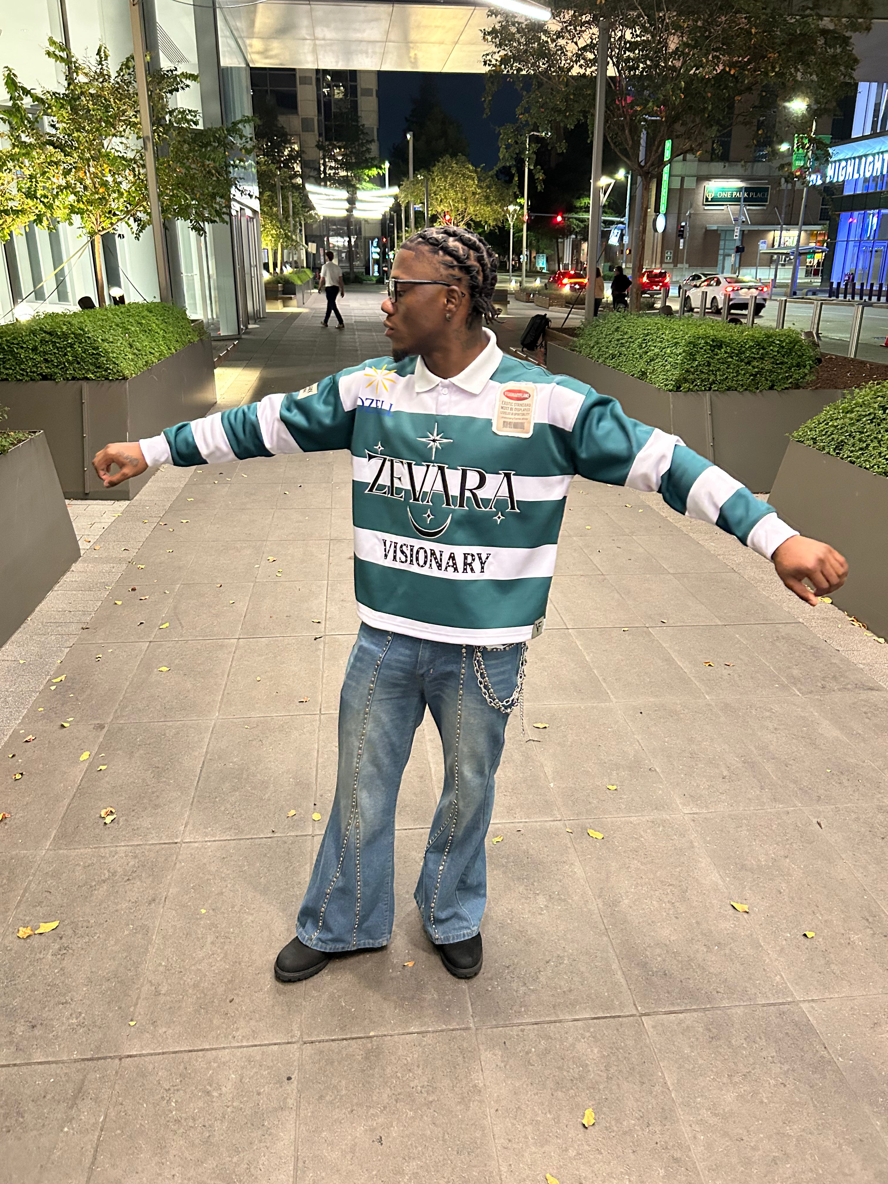 Visionary Flame Varsity Green Stripe Long Sleeve T-ShirtZEVARA COLLECTION
