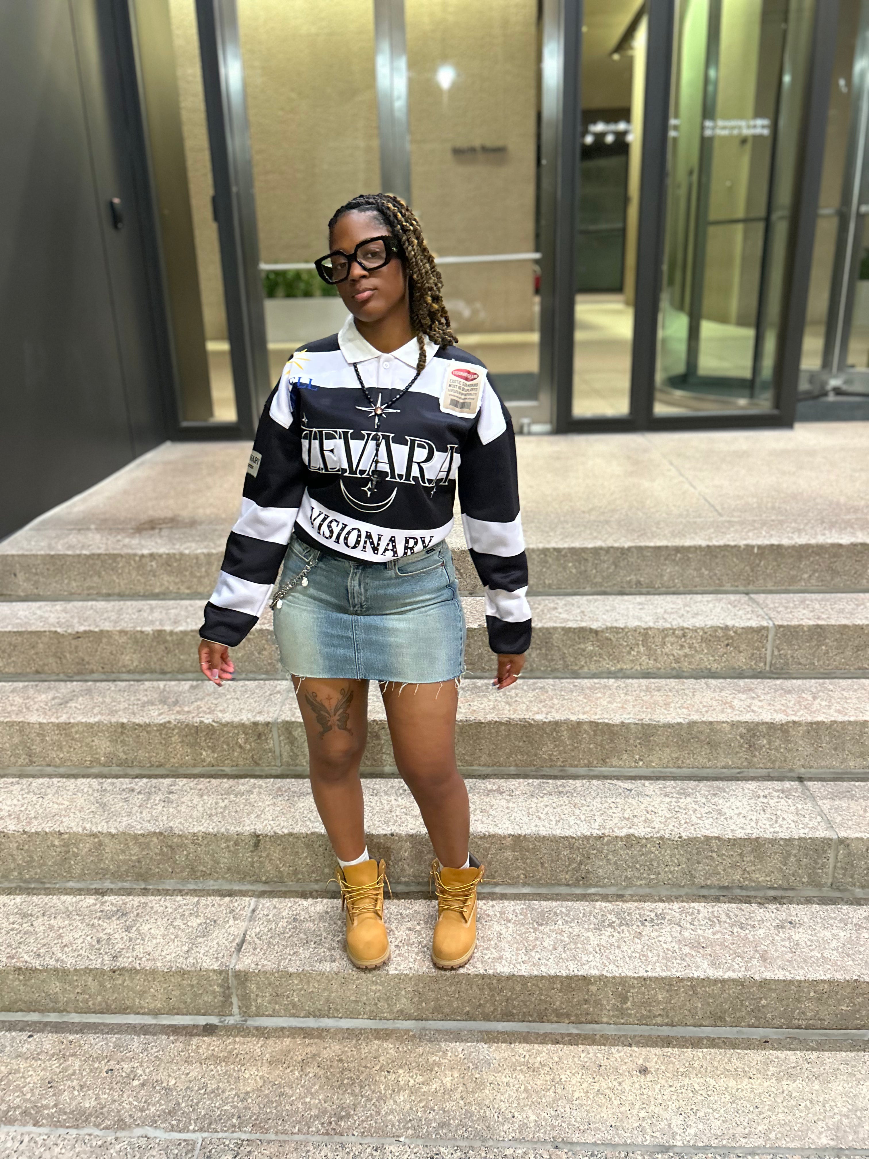 Visionary Flame Varsity Black Stripe Long Sleeve T-Shirt