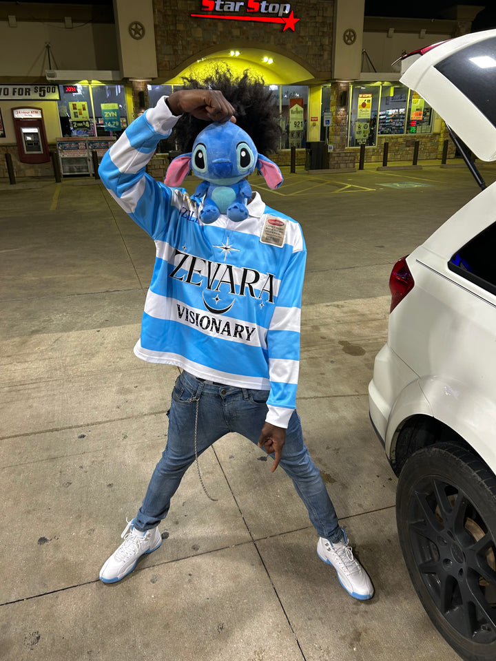 Visionary Flame Varsity Blue Stripe Long Sleeve T-Shirt