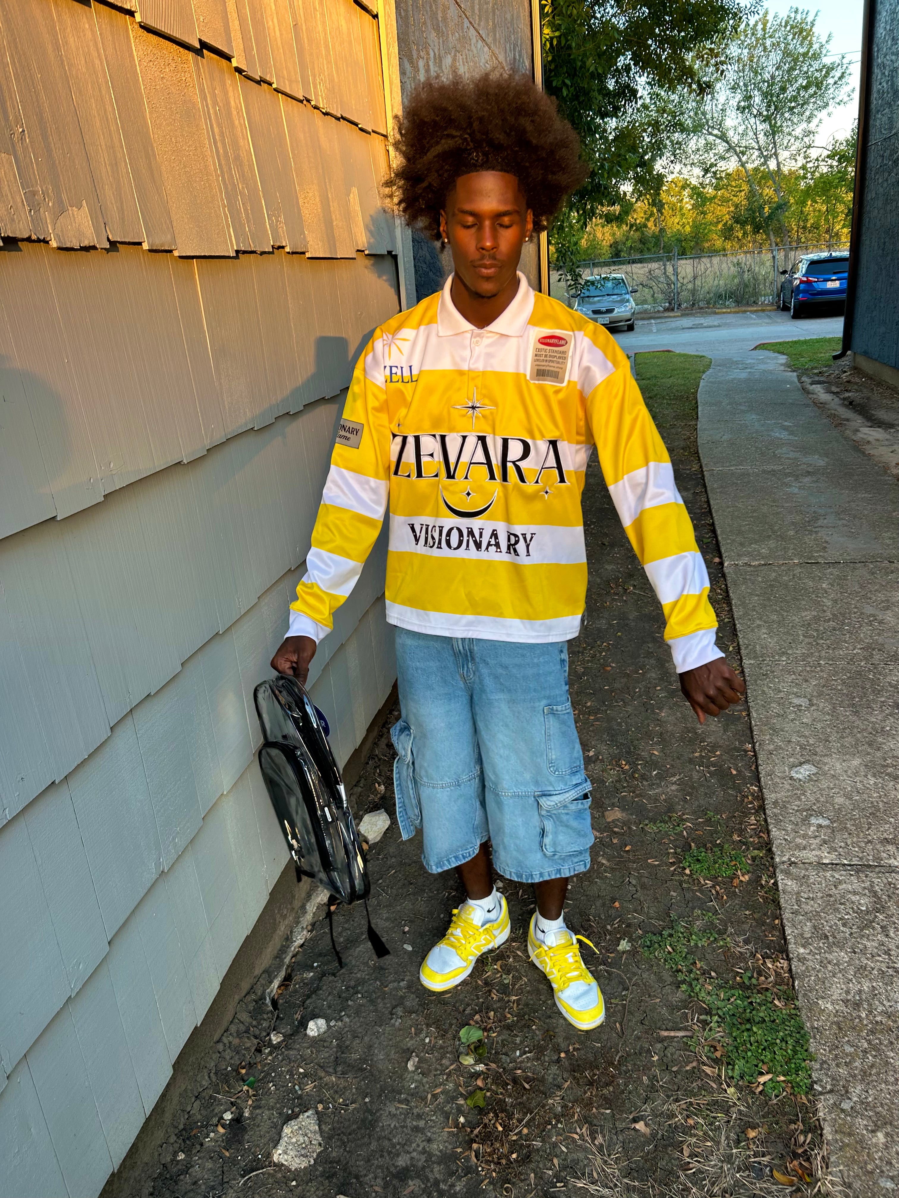 Visionary Flame Varsity Yellow Stripe Long Sleeve T-Shirt